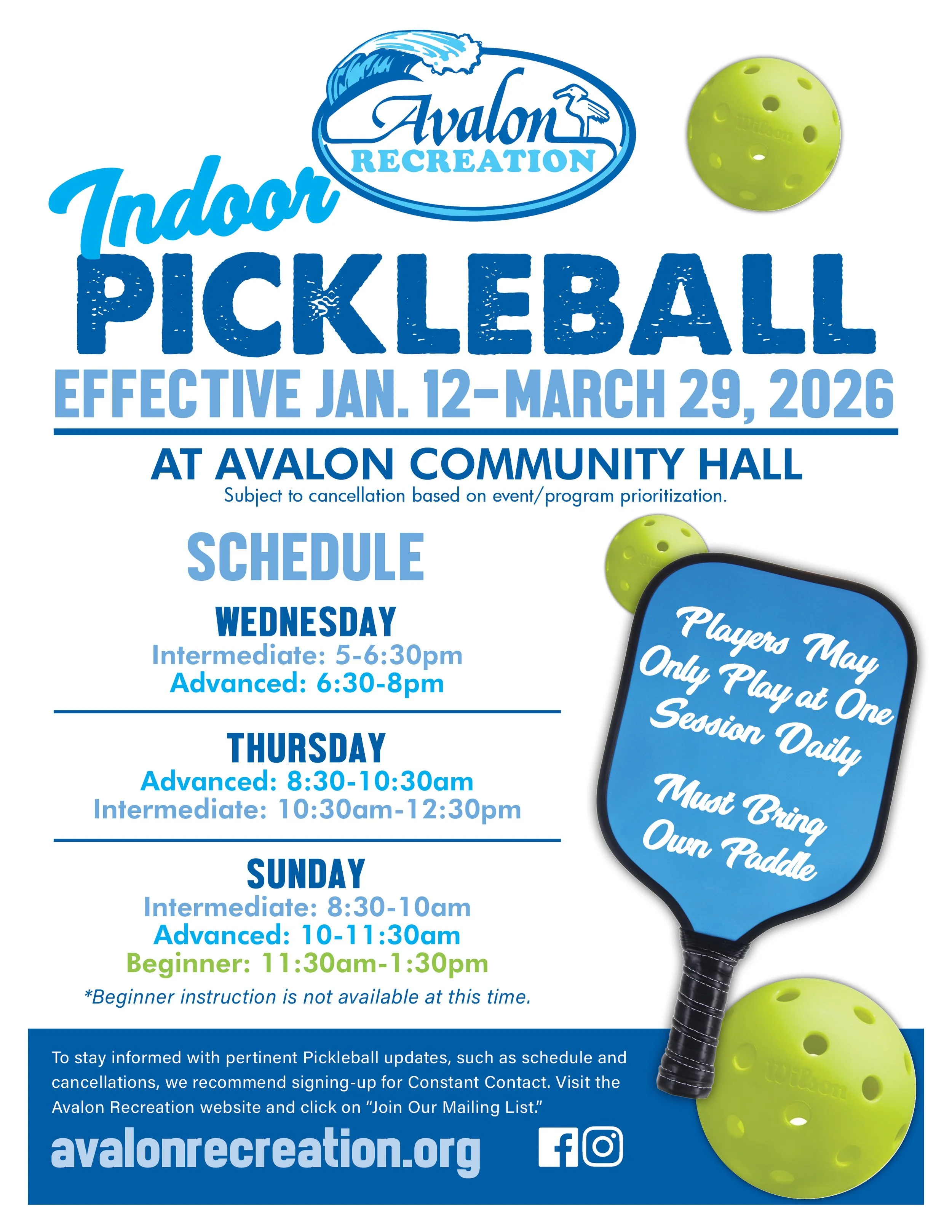 See NEW Indoor Schedule Effective 1/12/2026